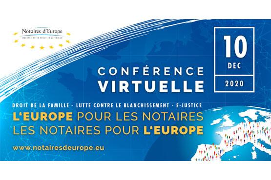Le CNUE organise une conférence virtuelle le 10 décembre de 10h00 à 16h30. Elle sera également l’évènement de clôture du 3ème programme de formation 2018-2020 « L’Europe pour les Notaires – Les Notaires pour l’Europe », organisé avec le soutien de l’Union européenne et cofinancé par la Commission européenne.